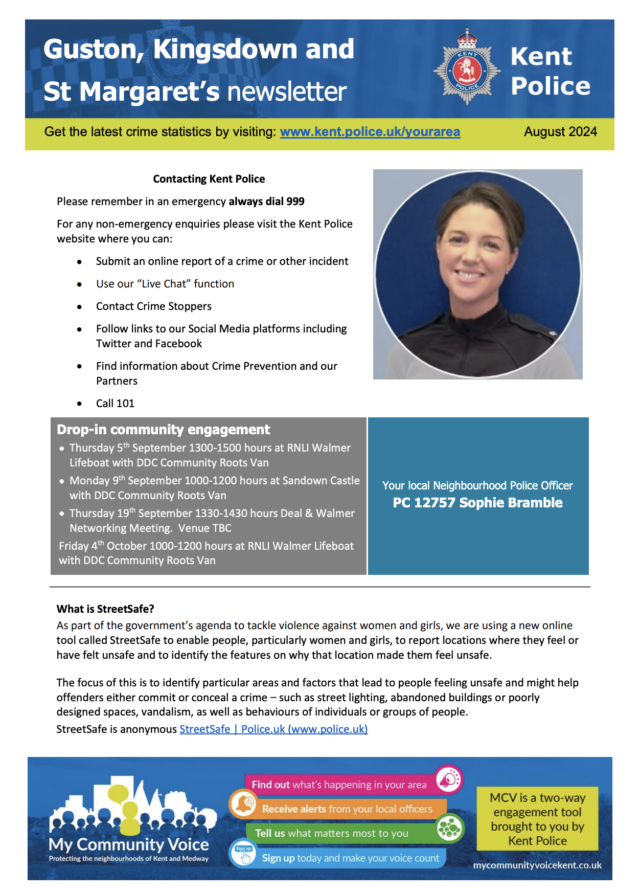 Kent Police – Guston, Kingsdown and St Margaret’s August 2024 newsletter