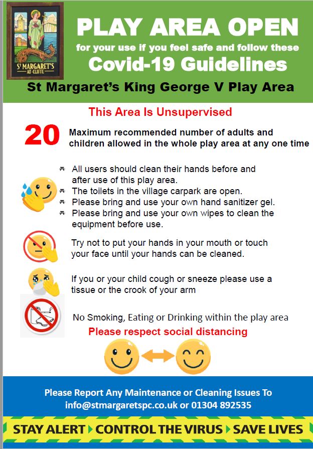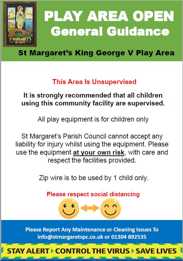 Your Parish Council have worked very hard to open the play equipment this morning – Monday 6th July. A link to the government guidelines that we need to adhere to are here – They did not make our life easy. The Slides and Tunnels are currently closed for example, but we will open them as soon as we safely can. Most equipment is open.